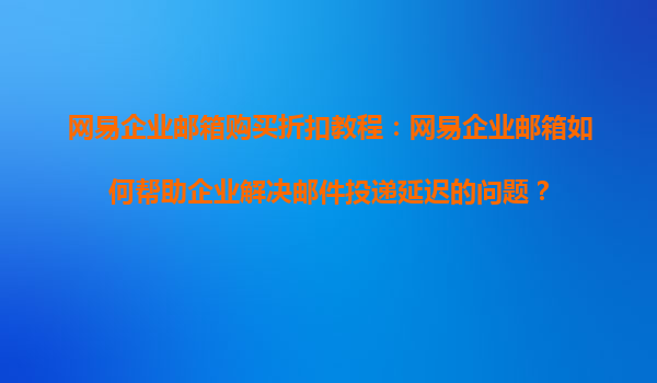 2025-08-21網(wǎng)易企業(yè)郵箱購買折扣教程:網(wǎng)易企業(yè)郵箱如何幫助企業(yè)解決郵件投遞延遲的問題? 一、郵件投遞延遲:企業(yè)溝通的隱形殺手 在快節(jié)奏的商業(yè)環(huán)境中,郵件投遞延遲可能帶來嚴(yán)重后...