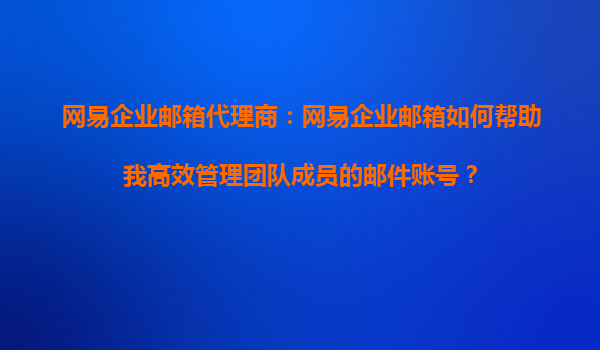 2025-08-19網(wǎng)易企業(yè)郵箱代理:網(wǎng)易企業(yè)郵箱如何幫助高效管理團(tuán)隊成員郵件賬號 在現(xiàn)代企業(yè)中,電子郵件作為日常溝通的重要工具,其管理效率直接影響到團(tuán)隊協(xié)作的流暢性。網(wǎng)易企業(yè)郵箱憑借其強大的功能和穩(wěn)定的服務(wù),成為眾多...