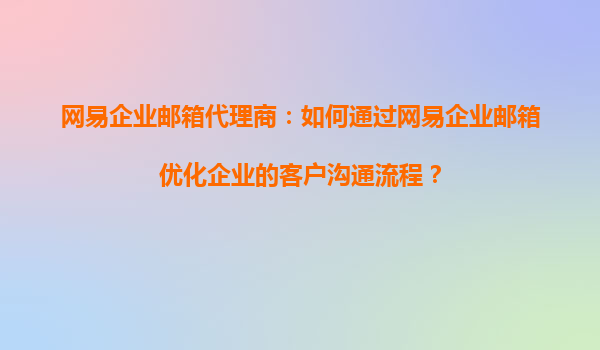 2025-08-20網(wǎng)易企業(yè)郵箱代理商:如何通過網(wǎng)易企業(yè)郵箱優(yōu)化企業(yè)的客戶溝通流程? 引言 在當(dāng)今數(shù)字化高速發(fā)展的時代,企業(yè)間的溝通效率直接影響到業(yè)務(wù)推進(jìn)和客戶關(guān)系的維護(hù)...