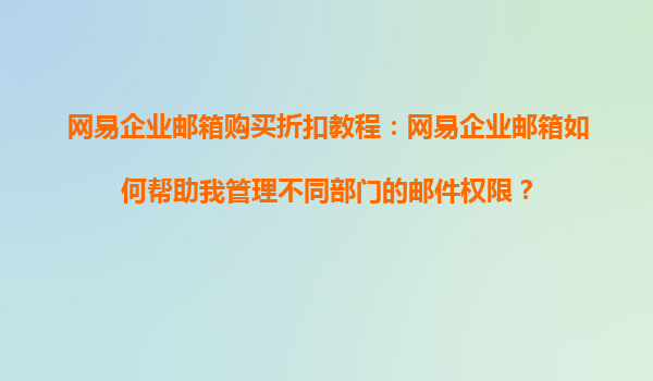 4008-020-360 網(wǎng)易企業(yè)郵箱購買折扣教程:網(wǎng)易企業(yè)郵箱如何幫助我管理不同部門的郵件權(quán)限? 在現(xiàn)代企業(yè)管理中,高效的郵件系統(tǒng)是保障內(nèi)部溝通順暢的重要工具。網(wǎng)易企業(yè)郵箱作為國內(nèi)領(lǐng)先的企業(yè)級郵箱服務(wù),不僅...