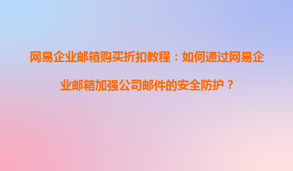 2025-08-20網(wǎng)易企業(yè)郵箱購買折扣教程:如何通過網(wǎng)易企業(yè)郵箱加強公司郵件的安全防護(hù)? 一、為什么選擇網(wǎng)易企業(yè)郵箱? 在數(shù)字化時代,企業(yè)郵箱不僅是溝通工具,更是企業(yè)數(shù)...
