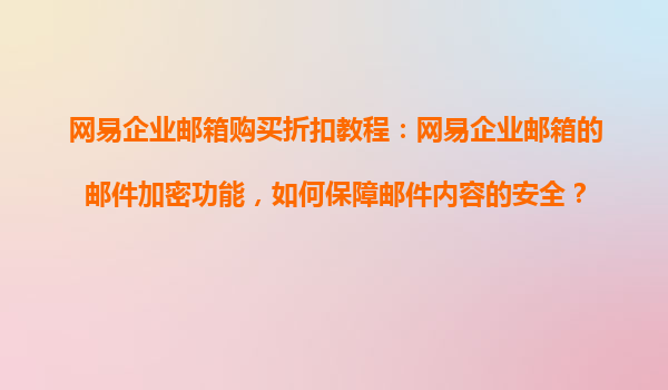 2025-08-21網(wǎng)易企業(yè)郵箱購買折扣教程:網(wǎng)易企業(yè)郵箱的郵件加密功能,如何保障郵件內(nèi)容的安全? 一、網(wǎng)易企業(yè)郵箱的優(yōu)勢 網(wǎng)易企業(yè)郵箱作為國內(nèi)領(lǐng)先的企業(yè)級郵件服務(wù)提供商,憑借其強大的技術(shù)實力和...