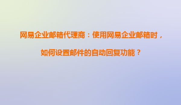 2025-08-19網(wǎng)易企業(yè)郵箱代理商指南:如何設(shè)置郵件自動回復(fù)功能 一、網(wǎng)易企業(yè)郵箱的自動回復(fù)功能優(yōu)勢 作為國內(nèi)領(lǐng)先的企業(yè)郵箱服務(wù)商,網(wǎng)易企業(yè)郵箱的自動回復(fù)功能在以下方面表現(xiàn)突出: 靈活的時間設(shè)...