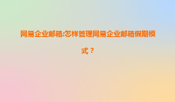 2025-08-14網(wǎng)易企業(yè)郵箱:如何高效管理假期模式? 一、網(wǎng)易企業(yè)郵箱假期模式的核心功能 網(wǎng)易企業(yè)郵箱的假期模式(又稱自動回復(fù)功能)是企業(yè)管理郵件溝通的重要工具,特別適用于員工休假、出差等場景...