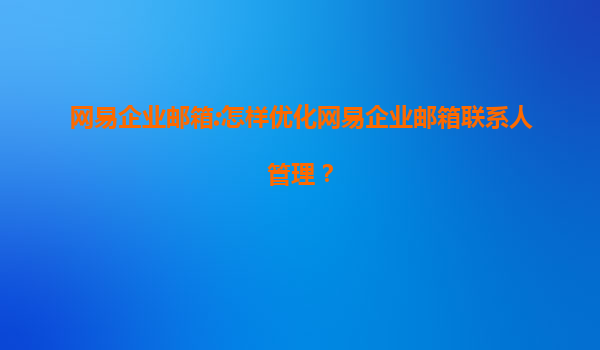 2025-08-12網(wǎng)易企業(yè)郵箱:如何優(yōu)化聯(lián)系人管理 在企業(yè)日常運(yùn)營中,高效的郵箱管理尤其是聯(lián)系人管理,對提升溝通效率和團(tuán)隊(duì)協(xié)作至關(guān)重要。網(wǎng)易企業(yè)郵箱作為國內(nèi)領(lǐng)先的企業(yè)郵箱服務(wù)商,憑借強(qiáng)大的功能、穩(wěn)定的性能和便捷的操...