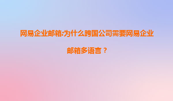 2025-08-11網(wǎng)易企業(yè)郵箱:為什么跨國公司需要網(wǎng)易企業(yè)郵箱多語言? 在全球化的商業(yè)環(huán)境中,跨國公司面臨著諸多挑戰(zhàn),其中之一便是如何高效地進(jìn)行跨語言、跨地域的溝通。網(wǎng)易企業(yè)郵箱憑借其強(qiáng)大的多語言支持功能,成為眾...