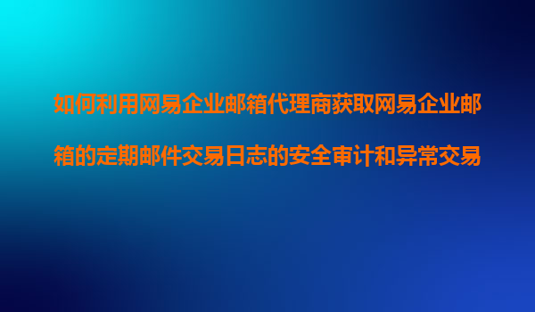 2025-11-10如何利用網(wǎng)易企業(yè)郵箱代理商獲取網(wǎng)易企業(yè)郵箱的定期郵件交易日志的安全審計和異常交易檢查服務(wù) 一、網(wǎng)易企業(yè)郵箱的核心優(yōu)勢 作為國內(nèi)領(lǐng)先的企業(yè)級郵箱服務(wù)提供商,網(wǎng)易企業(yè)郵箱以其高安全性、穩(wěn)定性和豐富...