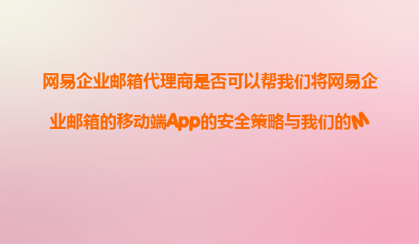 2025-11-10網(wǎng)易企業(yè)郵箱代理商能否助力移動端App安全策略與MDM系統(tǒng)集成? 一、網(wǎng)易企業(yè)郵箱的移動端安全優(yōu)勢 網(wǎng)易企業(yè)郵箱作為國內(nèi)領(lǐng)先的企業(yè)通信解決方案,其移動端App具備多重安全防護(hù)機(jī)制,包括但不限于: ...