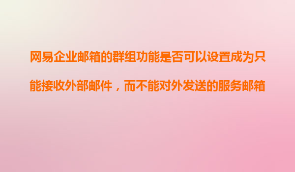 2025-11-10網(wǎng)易企業(yè)郵箱的群組功能:能否設(shè)置為僅接收外部郵件而禁止對外發(fā)送? 網(wǎng)易企業(yè)郵箱的核心優(yōu)勢 網(wǎng)易企業(yè)郵箱作為國內(nèi)領(lǐng)先的企業(yè)級郵件服務(wù)商,以高效、穩(wěn)定、安...