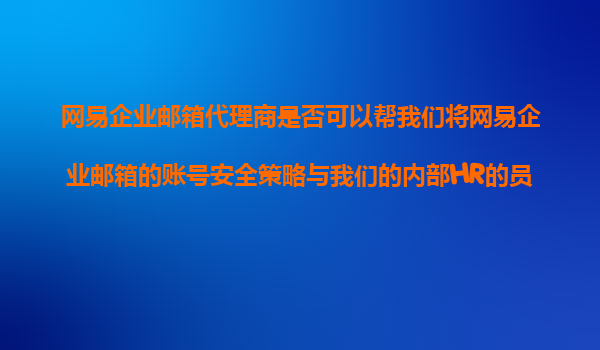 2025-11-11網(wǎng)易企業(yè)郵箱代理商能否實現(xiàn)與HR員工身份認(rèn)證系統(tǒng)的安全策略集成? 一、網(wǎng)易企業(yè)郵箱的核心安全優(yōu)勢 網(wǎng)易企業(yè)郵箱作為國內(nèi)領(lǐng)先的企業(yè)級郵件服務(wù),具備以下核心安全特性: 多因素認(rèn)證(MFA):支持短信驗證碼、TO...