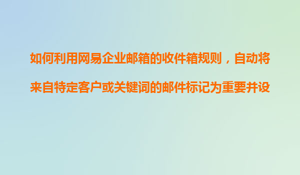 2025-11-10網(wǎng)易企業(yè)郵箱收件箱規(guī)則實戰(zhàn):自動標(biāo)記重要客戶郵件并設(shè)置提醒 為什么要使用收件箱規(guī)則? 在商務(wù)溝通中,來自重要客戶或包含關(guān)鍵項目信息的郵件往往需要優(yōu)先處理。網(wǎng)易企業(yè)郵箱的收件箱規(guī)則功...
