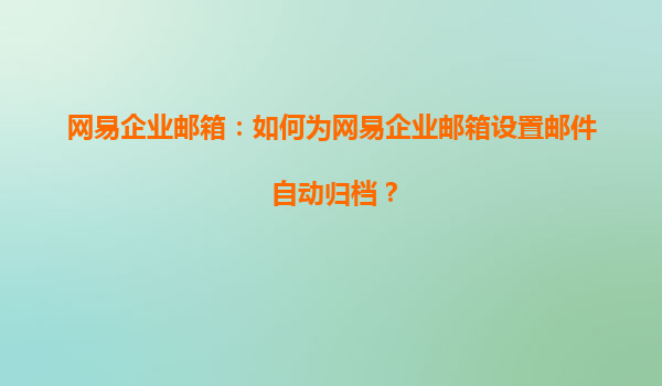 2025-08-06網(wǎng)易企業(yè)郵箱:如何為網(wǎng)易企業(yè)郵箱設(shè)置郵件自動(dòng)歸檔? 一、網(wǎng)易企業(yè)郵箱的優(yōu)勢 網(wǎng)易企業(yè)郵箱作為國內(nèi)領(lǐng)先的企業(yè)級郵件服務(wù)提供商,憑借以下核心優(yōu)勢成為眾多企業(yè)的首選: 高安全性:采用SSL/TLS加密傳輸...