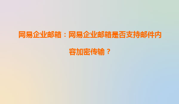 2025-08-06網(wǎng)易企業(yè)郵箱:安全高效的郵件通信解決方案 一、網(wǎng)易企業(yè)郵箱是否支持郵件內(nèi)容加密傳輸? 網(wǎng)易企業(yè)郵箱作為國內(nèi)領(lǐng)先的企業(yè)級郵件服務(wù)提供商,高度重視用戶數(shù)據(jù)的安全性。在郵件傳輸過程中,網(wǎng)易企...