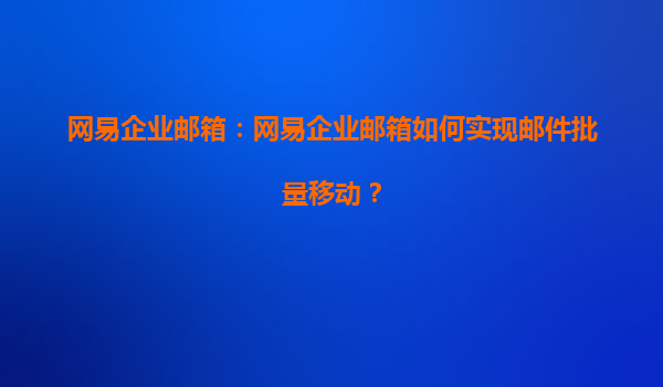 2025-08-06網(wǎng)易企業(yè)郵箱:如何高效實(shí)現(xiàn)郵件批量移動(dòng) 在日常辦公中,郵件管理是企業(yè)管理的重要組成部分。網(wǎng)易企業(yè)郵箱作為國內(nèi)領(lǐng)先的企業(yè)郵箱服務(wù)提供商,憑借其強(qiáng)大的功能和穩(wěn)定的性能,贏得了眾多企業(yè)的青睞。本文將詳細(xì)...