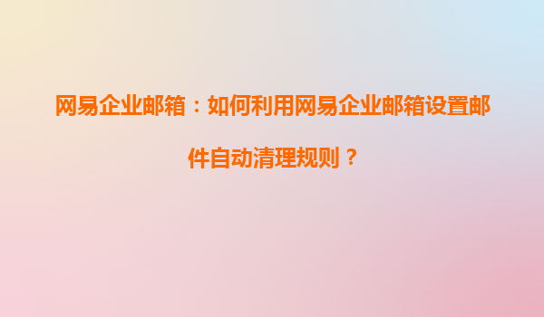 2025-08-06網(wǎng)易企業(yè)郵箱:如何利用網(wǎng)易企業(yè)郵箱設(shè)置郵件自動(dòng)清理規(guī)則? 在現(xiàn)代企業(yè)管理中,電子郵件是日常溝通的重要工具。隨著郵件數(shù)量的不斷增加,如何高效管理郵箱空間、提升工作效率成為企業(yè)關(guān)注的焦點(diǎn)。網(wǎng)易企業(yè)郵箱...
