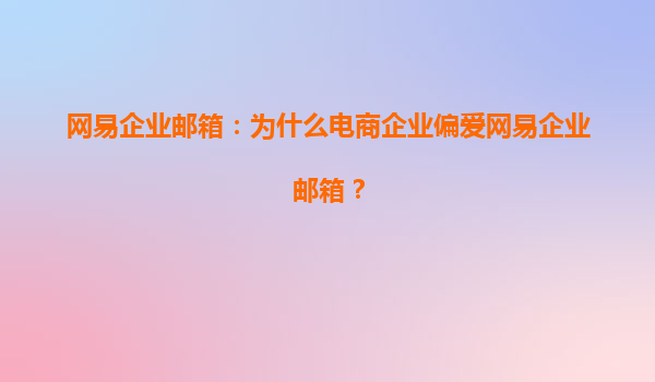 2025-08-03網(wǎng)易企業(yè)郵箱:為什么電商企業(yè)偏愛網(wǎng)易企業(yè)郵箱? 在數(shù)字化浪潮席卷全球的今天,電商行業(yè)作為互聯(lián)網(wǎng)經(jīng)濟(jì)的重要組成部分,對(duì)高效、安全、穩(wěn)定的通信工具需求日益增長(zhǎng)。而網(wǎng)易企業(yè)郵箱憑借其卓越的性能...