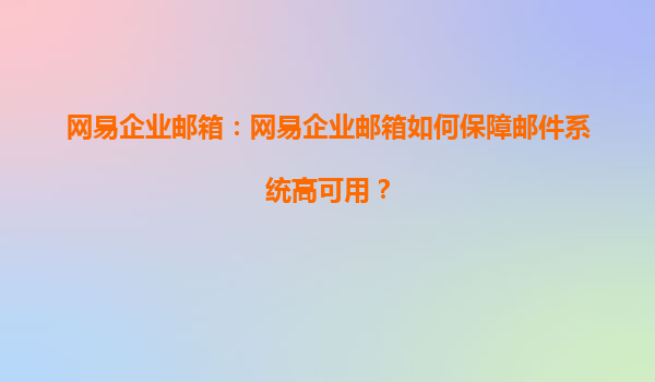 2025-08-03網(wǎng)易企業(yè)郵箱:如何保障郵件系統(tǒng)高可用? 在當(dāng)今數(shù)字化時(shí)代,企業(yè)郵箱已成為企業(yè)日常溝通和業(yè)務(wù)運(yùn)營(yíng)的重要工具。郵件系統(tǒng)的高可用性直接關(guān)系到企業(yè)的溝通效率和業(yè)務(wù)連續(xù)性。網(wǎng)易企業(yè)郵箱作為國(guó)內(nèi)領(lǐng)先的企業(yè)郵箱...