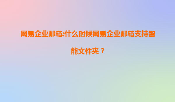 2025-07-21網(wǎng)易企業(yè)郵箱:什么時候支持智能文件夾?一文解析其優(yōu)勢與期待 作者:企業(yè)郵箱觀察者|更新時間:2023年10月 在數(shù)字化辦公浪潮中,網(wǎng)易企業(yè)郵箱憑借穩(wěn)定、安全、高效的特點,成為眾多企業(yè)的首選...