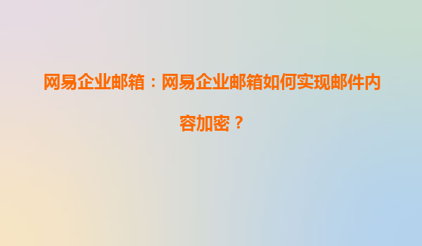 網(wǎng)易企業(yè)郵箱:如何實現(xiàn)郵件內(nèi)容加密?