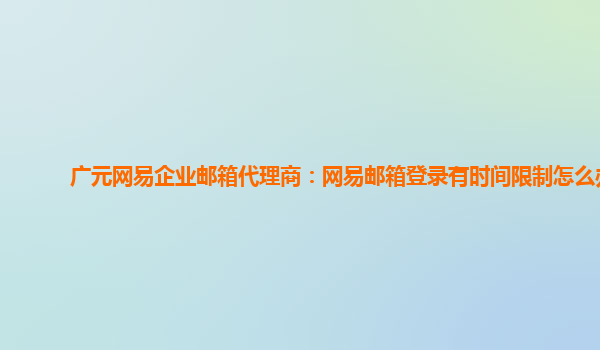 以廣元網(wǎng)易企業(yè)郵箱代理商:網(wǎng)易郵箱登錄有時間限制怎么辦