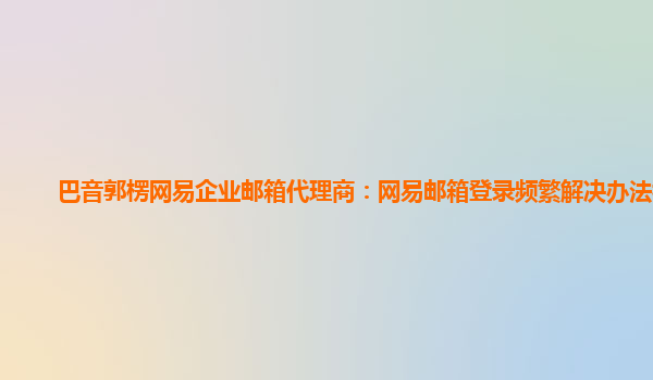 作為巴音郭楞網(wǎng)易企業(yè)郵箱的代理商,我們了解到很多用戶在使用網(wǎng)易郵箱時(shí)遇到了頻繁的登錄問(wèn)題。為了幫助用戶更好地解決這些問(wèn)題,我們制作了一段視頻,介紹了解決網(wǎng)易郵箱登錄頻繁問(wèn)題的方法。