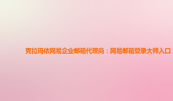 克拉瑪依網(wǎng)易企業(yè)郵箱代理商:網(wǎng)易郵箱登錄大師入口