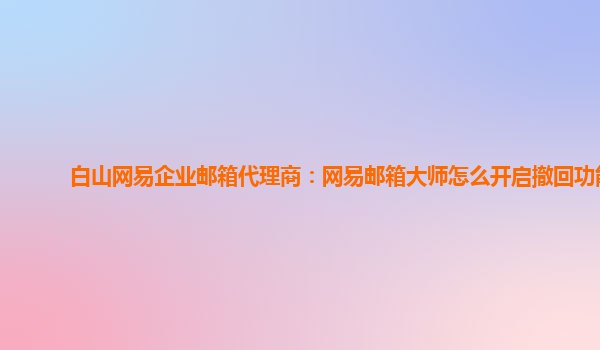 白山網易企業郵箱代理商:網易郵箱大師怎么開啟撤回功能