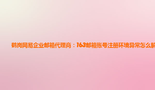 鶴崗網(wǎng)易企業(yè)郵箱代理商:163郵箱賬號注冊環(huán)境異常怎么解決
