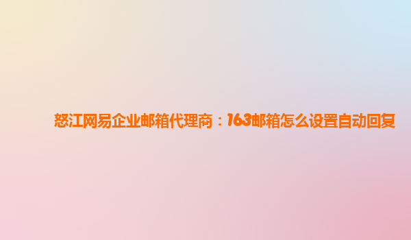 怒江網(wǎng)易企業(yè)郵箱代理商:163郵箱自動(dòng)回復(fù)設(shè)置