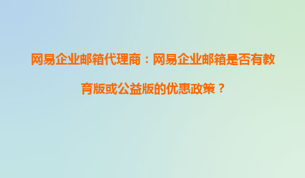 2025-11-03網(wǎng)易企業(yè)郵箱代理商解讀:教育版與公益版優(yōu)惠政策 作為國內(nèi)領(lǐng)先的企業(yè)級郵箱服務(wù)提供商,網(wǎng)易企業(yè)郵箱憑借其穩(wěn)定的性能、安全的保障和豐富的功能,贏得了眾多用戶的青睞。對于教育機(jī)構(gòu)和公益組織來說,網(wǎng)易企業(yè)郵箱...