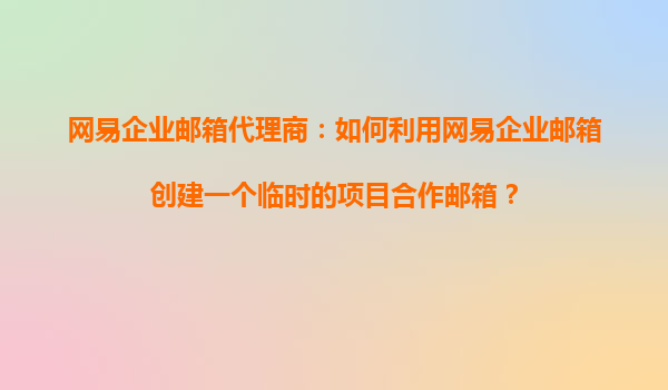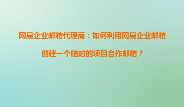 2025-11-02網(wǎng)易企業(yè)郵箱代理商:如何利用網(wǎng)易企業(yè)郵箱創(chuàng)建一個臨時的項(xiàng)目合作郵箱? 引言 在企業(yè)項(xiàng)目管理中,臨時項(xiàng)目合作郵箱是一種高效、安全的溝通方式,尤其適用于跨部門或跨企業(yè)的協(xié)作場景。網(wǎng)易企業(yè)郵箱作為國內(nèi)領(lǐng)...