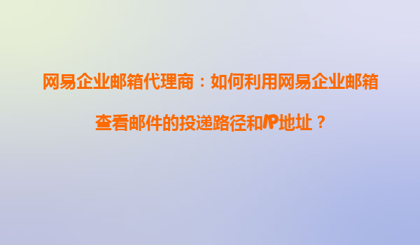 2025-11-03網(wǎng)易企業(yè)郵箱代理商的實(shí)用功能:追蹤?quán)]件投遞路徑與IP地址作為網(wǎng)易企業(yè)郵箱代理商,我們深知高效的郵件管理對企業(yè)至關(guān)重要。其中,追蹤?quán)]件投遞路徑和查看發(fā)信IP地址的功能,不僅能提升...