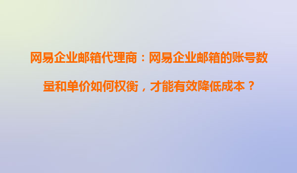 2025-10-31網(wǎng)易企業(yè)郵箱代理商:賬號數(shù)量與單價的科學權(quán)衡之道 引言 在數(shù)字化轉(zhuǎn)型加速的今天,企業(yè)郵箱已成為企業(yè)通信的基礎(chǔ)設(shè)施。作為國內(nèi)領(lǐng)先的解決方案,網(wǎng)易企業(yè)郵箱以其穩(wěn)定性、安全性及豐富的功能受到眾多企業(yè)的青...
