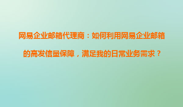 2025-10-30網(wǎng)易企業(yè)郵箱代理商:如何利用網(wǎng)易企業(yè)郵箱的高發(fā)信量保障,滿足日常業(yè)務(wù)需求? 一、網(wǎng)易企業(yè)郵箱的高發(fā)信量優(yōu)勢解析 網(wǎng)易企業(yè)郵箱作為國內(nèi)領(lǐng)先的企業(yè)級郵箱服務(wù)商,其高發(fā)信量保障是其核心...