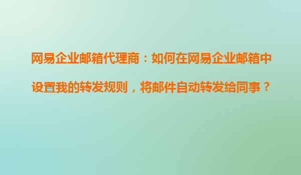 2025-10-30網(wǎng)易企業(yè)郵箱代理商:如何在網(wǎng)易企業(yè)郵箱中設(shè)置郵件自動轉(zhuǎn)發(fā)規(guī)則 一、網(wǎng)易企業(yè)郵箱的核心優(yōu)勢 作為國內(nèi)領(lǐng)先的企業(yè)郵箱服務(wù)提供商,網(wǎng)易企業(yè)郵箱以其高效穩(wěn)定、安全可靠和功能全面的特點深受企業(yè)用...