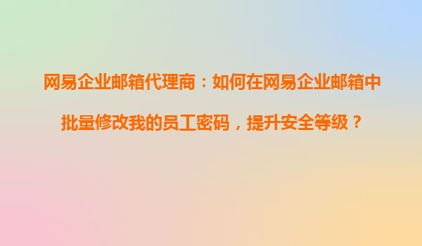 2025-10-30網(wǎng)易企業(yè)郵箱代理商指南:高效批量修改員工密碼以提升安全等級 網(wǎng)易企業(yè)郵箱的安全管理優(yōu)勢 網(wǎng)易企業(yè)郵箱作為國內(nèi)領(lǐng)先的企業(yè)級郵件服務(wù)提供商,始終將用戶數(shù)據(jù)安全放在首位。其內(nèi)置的多重加密技術(shù)、反垃圾...