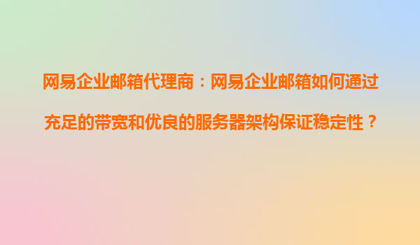 2025-10-28網(wǎng)易企業(yè)郵箱如何通過(guò)充足的帶寬和優(yōu)良的服務(wù)器架構(gòu)保證穩(wěn)定性? 一、引言 在當(dāng)今數(shù)字化辦公時(shí)代,企業(yè)郵箱不僅是內(nèi)外溝通的重要工具,更是企業(yè)數(shù)據(jù)安全與效率的核心載體。作為國(guó)內(nèi)領(lǐng)先的企業(yè)郵箱服務(wù)商,網(wǎng)...