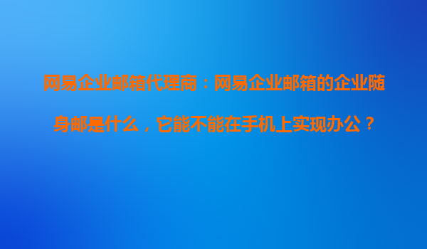 2025-10-23網(wǎng)易企業(yè)郵箱代理商:網(wǎng)易企業(yè)郵箱的企業(yè)隨身郵是什么,它能不能在手機上實現(xiàn)辦公? 在當(dāng)今移動互聯(lián)網(wǎng)時代,企業(yè)辦公早已不再局限于傳統(tǒng)的PC端,移動辦公的需求日益增長。網(wǎng)易企業(yè)郵箱作為國內(nèi)領(lǐng)先的...