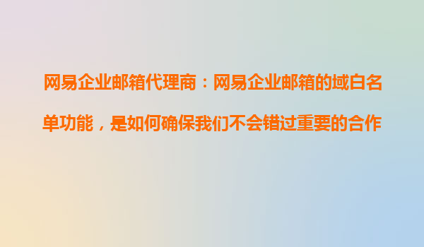 2025-10-25域白名單功能:保障重要合作伙伴來信無遺漏 作為企業(yè)溝通的重要工具,企業(yè)郵箱的穩(wěn)定性和安全性至關(guān)重要。網(wǎng)易企業(yè)郵箱憑借其強大的技術(shù)實力和豐富的運營經(jīng)驗,為企業(yè)用戶提供了多項實用功能,其中域白名單功能尤為...