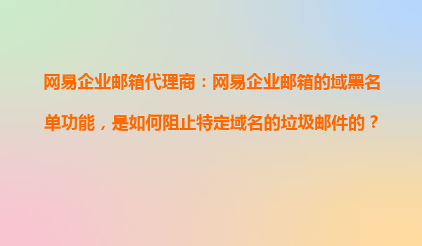 2025-10-25網(wǎng)易企業(yè)郵箱代理商解析:網(wǎng)易企業(yè)郵箱域黑名單功能如何高效攔截垃圾郵件 一、引言:企業(yè)郵箱面臨的垃圾郵件挑戰(zhàn) 在數(shù)字化辦公時代,企業(yè)郵箱已成為商務(wù)溝通的核心工具,但隨之而來的垃圾郵件問題嚴(yán)重...