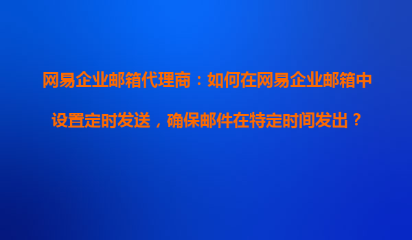 2025-10-24網(wǎng)易企業(yè)郵箱代理商:如何在網(wǎng)易企業(yè)郵箱中設(shè)置定時發(fā)送,確保郵件在特定時間發(fā)出? 一、網(wǎng)易企業(yè)郵箱的優(yōu)勢 作為國內(nèi)領(lǐng)先的企業(yè)郵箱服務(wù)提供商,網(wǎng)易企業(yè)郵箱憑借其穩(wěn)定、安全、高效的特點,贏得了眾多企...