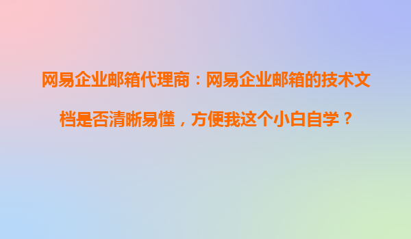 4008-020-360 網(wǎng)易企業(yè)郵箱代理商:網(wǎng)易企業(yè)郵箱的技術文檔是否清晰易懂,方便我這個小白自學? 一、網(wǎng)易企業(yè)郵箱的技術文檔設計特點 網(wǎng)易企業(yè)郵箱作為國內(nèi)領先的企業(yè)級郵件服務提供商,其技術文檔的編寫充分考慮了不同...