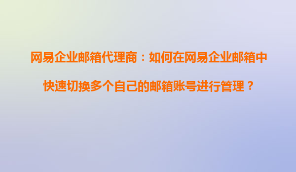2025-10-20網(wǎng)易企業(yè)郵箱代理商:如何在網(wǎng)易企業(yè)郵箱中快速切換多個自己的郵箱賬號進行管理? 一、網(wǎng)易企業(yè)郵箱的多賬號管理優(yōu)勢 網(wǎng)易企業(yè)郵箱作為國內(nèi)領先的企業(yè)級郵件服務提供商,憑借其穩(wěn)定、安全、高效的特點...