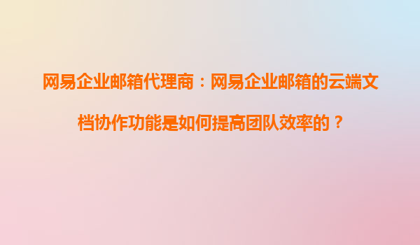 2025-10-21` 網(wǎng)易企業(yè)郵箱云端文檔協(xié)作功能如何提升團隊效率 在當今快節(jié)奏的商業(yè)環(huán)境中,團隊協(xié)作效率是企業(yè)成功的關鍵因素之一。網(wǎng)易企業(yè)郵箱憑借其強大的云端文檔協(xié)作功能,為企業(yè)團隊提供了高效、便捷的協(xié)作工具,幫助企...