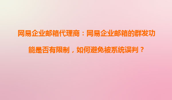2025-10-20網(wǎng)易企業(yè)郵箱代理商:網(wǎng)易企業(yè)郵箱的群發(fā)功能是否有限制,如何避免被系統(tǒng)誤判? 一、網(wǎng)易企業(yè)郵箱的群發(fā)功能簡介 網(wǎng)易企業(yè)郵箱作為國內(nèi)領先的企業(yè)通信解決方案,其群發(fā)功能旨在幫助用戶高效...