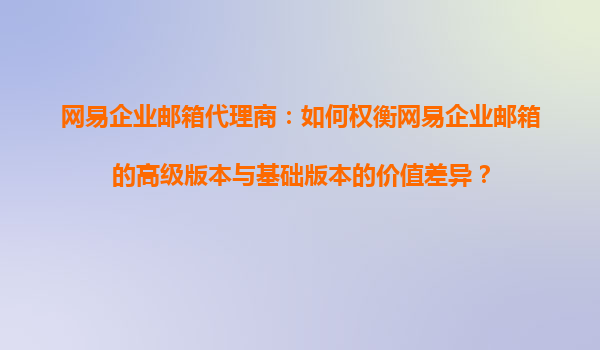 2025-10-21網(wǎng)易企業(yè)郵箱代理商:如何權衡網(wǎng)易企業(yè)郵箱的高級版本與基礎版本的價值差異? 一、網(wǎng)易企業(yè)郵箱的核心優(yōu)勢 在選擇企業(yè)郵箱版本之前,首先需要了解網(wǎng)易企業(yè)郵箱的核心優(yōu)勢,這些優(yōu)勢使其成為國內(nèi)企...