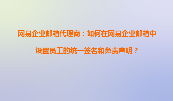 2025-10-20網(wǎng)易企業(yè)郵箱代理商:如何在網(wǎng)易企業(yè)郵箱中設置員工的統(tǒng)一簽名和免責聲明? 作為企業(yè)日常辦公的重要工具,企業(yè)郵箱的規(guī)范化管理不僅有助于提升企業(yè)形象,還能提高溝通效率。網(wǎng)易企業(yè)郵箱作為國內(nèi)領先...
