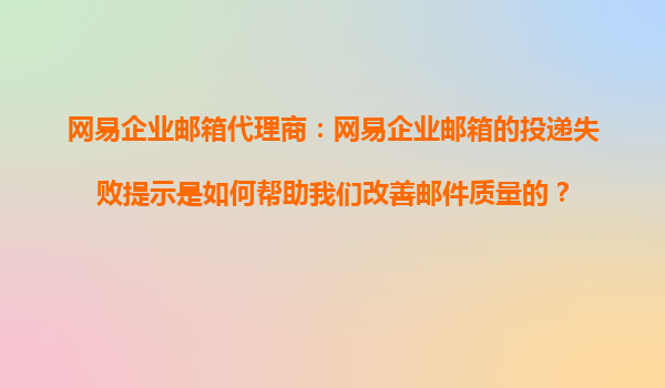 2025-10-19網(wǎng)易企業(yè)郵箱代理商:投遞失敗提示如何助力企業(yè)提升郵件質(zhì)量 一、引言:郵件投遞失敗提示的價(jià)值 在數(shù)字化辦公場(chǎng)景中,企業(yè)郵箱是內(nèi)外溝通的核心工具,而郵件投遞成功率...
