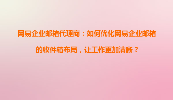 2025-10-18網(wǎng)易企業(yè)郵箱代理商:如何優(yōu)化網(wǎng)易企業(yè)郵箱的收件箱布局,讓工作更加清晰? 一、網(wǎng)易企業(yè)郵箱的核心優(yōu)勢(shì) 作為國內(nèi)領(lǐng)先的企業(yè)通信服務(wù),網(wǎng)易企業(yè)郵箱憑借以下優(yōu)勢(shì)成為眾多企業(yè)的首選: ...