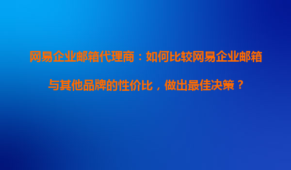 2025-10-18網(wǎng)易企業(yè)郵箱代理商:如何比較網(wǎng)易企業(yè)郵箱與其他品牌的性價(jià)比,做出最佳決策? 一、企業(yè)郵箱的重要性與市場(chǎng)現(xiàn)狀 在數(shù)字化辦公時(shí)代,企業(yè)郵箱不僅是溝通工具,更是企業(yè)形象、數(shù)據(jù)安全和協(xié)作效...